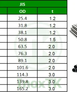 1. Kích thước của ống inox vi sinh theo tiêu chuẩn JIS